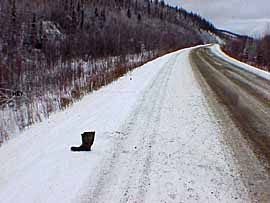 Highway, about 150 miles north of Dawson City. I asked some questions